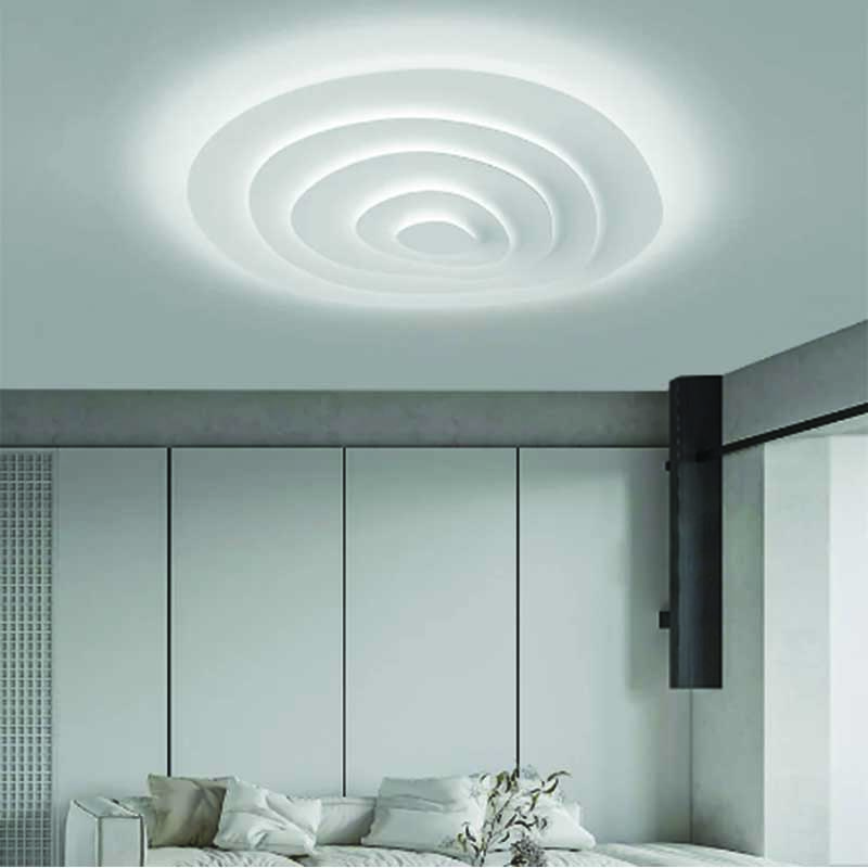 – An annual ring corrugated ceiling lamp design, simple but not simple, surrounded by light, with distinct layers.